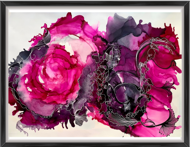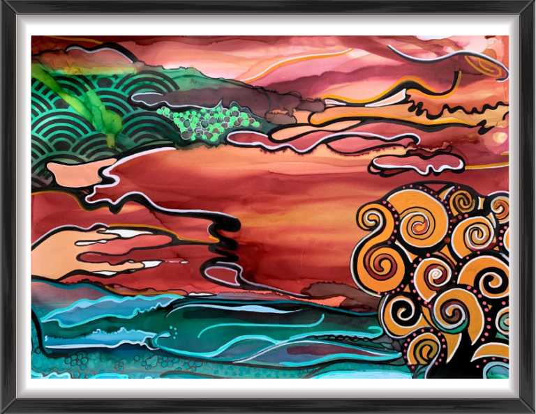Die Bilder entstehen in zwei Phasen: Erst wenn die Tinte vollständig getrocknet ist, kann ich sie mit Acryl übermalen. Durch den zeitlichen Abstand sehe ich das Werk mit völlig neuen Augen, wenn ich es wieder in die Hand nehme. Das liebe ich! Ich wähle immer ein Kunstwerk, das meine Tagesstimmung widerspiegelt.